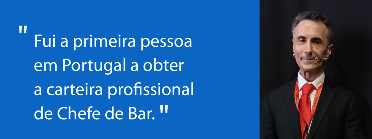 Estas instalações atuais ainda não existiam. Na altura, havia três cursos de aperfeiçoamento e eu fi-los todos – cursos de Barman 2ª, Barman 1ª e Chefe de Bar. Com 18 anos, com os cursos concluídos, já tinha uma carteira profissional de chefe de Bar. Fui a primeira pessoa em Portugal a obter a carteira profissional de Chefe de Bar.